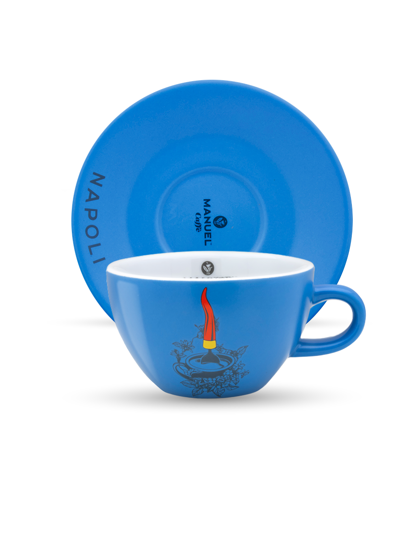 Tazza collezione Napoli per cappuccino da 210ml. Set composto di 1 tazza e 1 piattino abbinato.